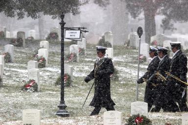 | Keywords: Full honors funeral 140121-N-ZE053-002.jpg en Master Chief Musician Joe Brown leads the U S Navy Ceremonial Guard and the U S Navy Ceremonial Band during a full honors funeral at Arlington National Cemetery A snow storm closed the federal government that day however the Navy Band and the Ceremonial Guard continued to render honors to veterans The band performs music at official military government and special events U S Navy photo by Chief Musician Christian Johanson/Released 2014-01-21 Christian Johanson https //www dvidshub net/image/1156901 140121-N-ZE053-002 2014-01-27 23 10 ARLINGTON VA US PD-USGov-Military-Navy Arlington National Cemetery Images from DoD uploaded by Fæ |