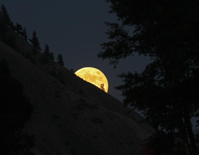 Keywords: full moon rising night landscape sky outdoors moonlight glow lunar scenery skyline silhouette trees mountain scene dark nature