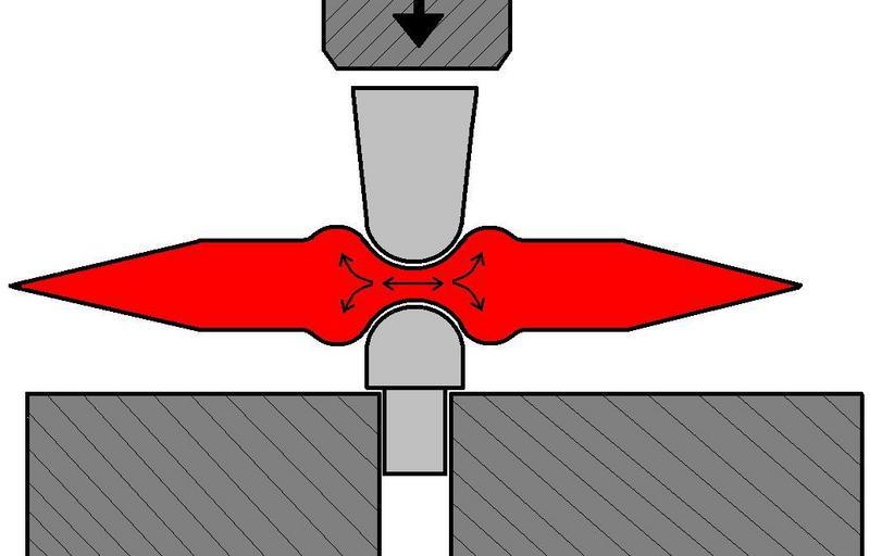 | Keywords: Fuller use in bladesmithing.JPG en The use of fullers in bladesmithing The fullers a set of blacksmithing tools are represented in light grey The lower fuller has a square peg which fits into the hole in the anvil while the upper fuller has a flat surface for hitting with a hammer The fullers displace material forcing it sideways and outward from the surface at the same time they make the groove in the blade also called a fuller 2014-01-26 08 34 25 own Zaereth cc-zero Uploaded with UploadWizard Blacksmith's tools |