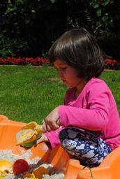 Keywords: fun the little girl child joy sandpit playground unconcern summer childhood sand