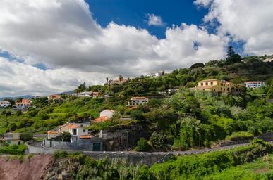 Keywords: funchal madeira portugal mountain homes holiday landscape forest hill nature clouds sky sun tree bushes blue road bergstrasse