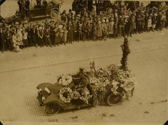 | Keywords: funeral michael collins michaelcollins dublin ireland leinster monday 28th august 1922 1920s twenties 20th century 20thcentury irish civil war irishcivilwar civil war civilwar national army nationalarmy soldiers car wreaths uniforms cobblestones cars crowds carriages horses mourning crying hats children tram lines tramlines hogan-wilson collection hoganwilsoncollection w.d. hogan wdhogan national library of ireland nationallibraryofireland location identified locationidentified monochrome National Army soldiers drive a car laden with wreaths through the streets of Dublin towards Glasnevin Cemetery for the burial of Michael Collins. cattlewagons Tells us that the vehicle is a Crossley, military tender with the twin rear tyres. Collins was riding in a very rare Leyland 8 car when he was assassinated. Photographer: Probably W.D. Hogan Date: Monday, 28 August 1922 NLI Ref.: HOGW 29 National Army soldiers drive a car laden with wreaths through the streets of Dublin towards Glasnevin Cemetery for the burial of Michael Collins. cattlewagons Tells us that the vehicle is a Crossley, military tender with the twin rear tyres. Collins was riding in a very rare Leyland 8 car when he was assassinated. Photographer: Probably W.D. Hogan Date: Monday, 28 August 1922 NLI Ref.: HOGW 29 |