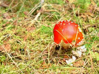 Keywords: fungus forest needles red dry moss toadstool summer twigs nature macro