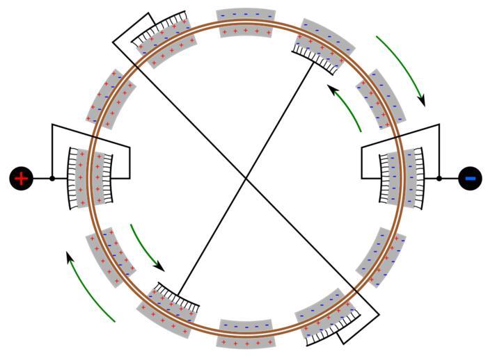 Keywords: Funktionsschema Influenzmaschine.svg Funktionelle schematische Zeichnung einer Influenzmaschine Own 2008-05-08 RobertKuhlmann Wimshurst machines