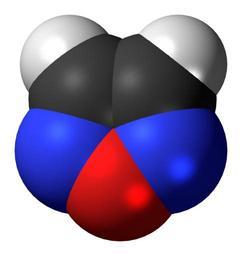 | Keywords: Furazan-3D-spacefill.png Space-filling model of the furazan molecule also known as 1 2 5-oxadiazole a heterocycle and a simple aromatic ring Colour code 505050 Carbon C black<br> F0F0F0 Hydrogen H white<br> F51E1E Oxygen O red<br> 3C50FA Nitrogen N blue<br> 2011-05-31 own DS Visualizer Jynto talk Ball-and-stick version cc-zero Oxadiazoles Simple aromatic rings Images by Jynto Space-filling models | ||||