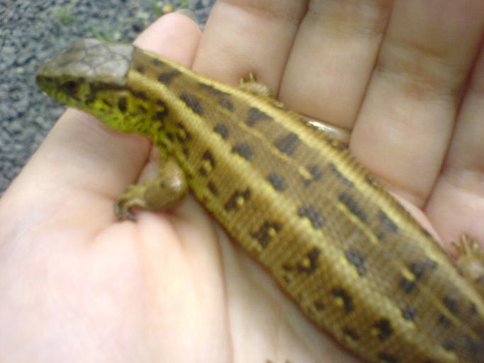 Keywords: Furge gyik 6.JPG en Sand Lizard Lacerta agilis in Marosillye Hunyad county hu Furge gyik Lacerta agilis Marosillyen Marosillye Hunyad megye Dénes Dalma 2008 julius 8 Lacerta agilis on hand