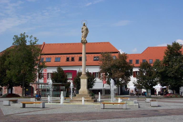 Keywords: furstenfeld fölöstöm styria austria city main market square fountain downtown summer statue architecture building buildings people urban street square