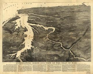 | Keywords: monochrome outdoor photo border text G3709_31_A35_1861_W5: Interesting Bird’s Eye View of the Seat of War. Parts of Maryland, Delaware, Virginia and North Carolina, and also the coast line from Cape Henry to Fort Pickens, with the US Blockading Fleet. Created by A. Winch, 1861. Courtesy of the Library of Congress. (5/22/2015). G3709_31_A35_1861_W5: Interesting Bird’s Eye View of the Seat of War. Parts of Maryland, Delaware, Virginia and North Carolina, and also the coast line from Cape Henry to Fort Pickens, with the US Blockading Fleet. Created by A. Winch, 1861. Courtesy of the Library of Congress. (5/22/2015). |