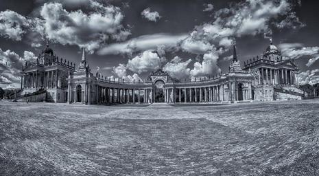 Keywords: gästehaus new palais castle sanssouci potsdam berlin architecture tourist attraction germany black and white panorama freehand ptgui