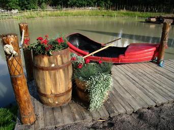 Keywords: götene adventure land boat water park bridge flowers oars barrel