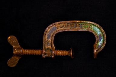 Keywords: g-clamp woodworking tool rusty old steel