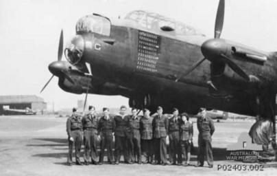 | Keywords: G for George last mission crew AWM P02403.002.jpg AWM caption The Avro Lancaster bomber 'G' George AR-G W4783 460 Squadron RAAF and the crew members who flew the aircraft on its last operation 'G' George flew its first bombing operation against Mannheim Germany on 6 December 1942 and its last operation against Cologne Germany on 20 April 1944 The bomb log is visible underneath the cockpit showing 90 completed operations however the aircraft's log book only records 89 <br> Identified from left Sergeant Sgt George Knott RAF Flight Engineer Sgt Leo Armstrong RAAF Navigator Flying Officer Jack Critchley RAAF Pilot unidentified ground crew Pilot Officer Roy Samson RAAF Wireless Operator Squadron Chaplain Squadron Administrative Officer Sgt Fred Shaw RAF Rear Gunner unidentified Womens' Auxiliary Air Force Sgt Sgt Wilf Starkey RAF Mid Upper Gunner The aircraft is now part of the National Collection held at the Australian War Memorial P02403 002 1944-04 not stated PD-Australia G for George World War II people of the Royal Australian Air Force Avro Lancaster aircrew ImageNote 1 108 173 25 101 450 285 2 Sergeant Sgt George Knott RAF Flight Engineer ImageNoteEnd 1 ImageNote 2 132 171 25 102 450 285 2 Sgt Leo Armstrong RAAF Navigator ImageNoteEnd 2 ImageNote 3 156 170 28 100 450 285 2 Flying Officer Jack Critchley RAAF Pilot ImageNoteEnd 3 ImageNote 4 205 170 25 94 450 285 2 Pilot Officer Roy Samson RAAF Wireless Operator ImageNoteEnd 4 ImageNote 5 316 170 34 97 450 285 2 Sgt Wilf Starkey RAF Mid Upper Gunner ImageNoteEnd 5 ImageNote 6 276 173 27 93 450 285 2 Sgt Fred Shaw RAF Rear Gunner ImageNoteEnd 6 ImageNote 7 253 171 30 98 450 285 2 Squadron Administrative Officer ImageNoteEnd 7 ImageNote 8 229 173 28 90 450 285 2 Squadron Chaplain ImageNoteEnd 8 Avro Lancaster in Australian service |