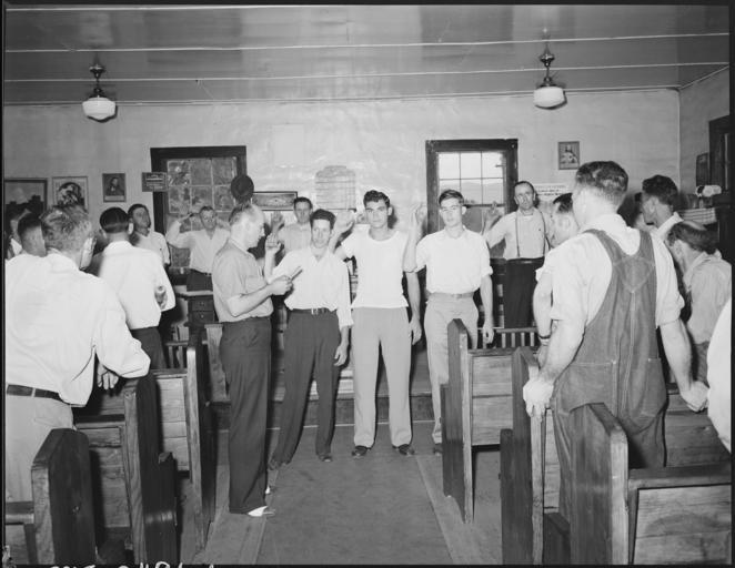 | Keywords: labor u.s. national archives usnationalarchives nara:arcid=541282 coal mines coalmines mines mine workers mineworkers coal miners coalminers kentucky kenvir coal unions umwa g.w. hall gwhall organized labor organizedlabor black mountain corporation blackmountaincorporation kenvir, harlan county, kentucky kenvirharlancountykentucky kenvir, kentucky kenvirkentucky harlan county, kentucky harlancountykentucky harlan county harlancounty blackandwhite monochrome indoor black and white Original Caption: "G.W. Hall, District Field Worker UMWA Gives Oath to Miners Joining Union. Black Mountain Corporation, 30-31, Kenvir, Harlan County, Kentucky." U.S. National Archives’ Local Identifier: NWDNS-245-MS-2491L From: Series: Photographs of the Medical Survey of the Bituminous Coal Industry (Record Group 245) Created by: Department of the Interior. Solid Fuels Administration For War. (04/19/1943 - 06/30/1947 ) Production Date: 9/6/1946 Photographer: Lee, Russell, 1903-1986 Subjects: Coal mines and mining Mines and mineral resources Persistent URL: catalog.archives.gov/id/541282 Repository: Still Picture Records Section, Special Media Archives Services Division (NWCS-S), National Archives at College Park, 8601 Adelphi Road, College Park, MD, 20740-6001. For information about ordering reproductions of photographs held by the Still Picture Unit, visit: www.archives.gov/research/order/still-pictures.html Reproductions may be ordered via an independent vendor. NARA maintains a list of vendors at www.archives.gov/research/order/vendors-photos-maps-dc.html Access Restrictions: Unrestricted Use Restrictions: Unrestricted Original Caption: "G.W. Hall, District Field Worker UMWA Gives Oath to Miners Joining Union. Black Mountain Corporation, 30-31, Kenvir, Harlan County, Kentucky." U.S. National Archives’ Local Identifier: NWDNS-245-MS-2491L From: Series: Photographs of the Medical Survey of the Bituminous Coal Industry (Record Group 245) Created by: Department of the Interior. Solid Fuels Administration For War. (04/19/1943 - 06/30/1947 ) Production Date: 9/6/1946 Photographer: Lee, Russell, 1903-1986 Subjects: Coal mines and mining Mines and mineral resources Persistent URL: catalog.archives.gov/id/541282 Repository: Still Picture Records Section, Special Media Archives Services Division (NWCS-S), National Archives at College Park, 8601 Adelphi Road, College Park, MD, 20740-6001. For information about ordering reproductions of photographs held by the Still Picture Unit, visit: www.archives.gov/research/order/still-pictures.html Reproductions may be ordered via an independent vendor. NARA maintains a list of vendors at www.archives.gov/research/order/vendors-photos-maps-dc.html Access Restrictions: Unrestricted Use Restrictions: Unrestricted |