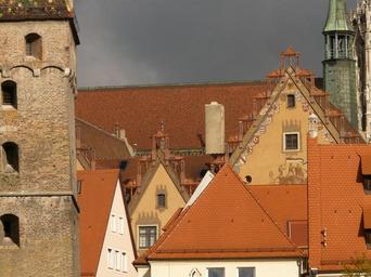 Keywords: gable roofs homes facades old town ulm metzgerturm city view city building architecture city panorama town hall ulm cathedral münster towers facades