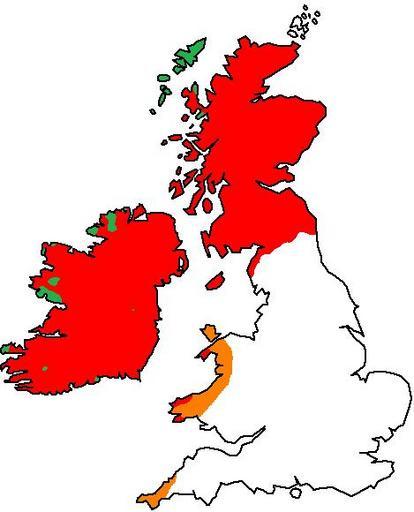 Keywords: Gaelic British Isles.jpg Irish LéirÃonn an Ãomhá seo na teorannacha is leithne a raibh an Sean-Ghaeilge á labhairt dearg Éire Alban Oileán Mhanainn san áireamh mar aon le háiteanna i dtuaisceart Shasana iarthar na Breataine Bige agus Corn na Breataine LéirÃonn an Ãomhá áit ina mbÃonn clocha nó croimleacha le abairtà scrÃofa san ogham iontu oráiste ScrÃobhadh an chuid is mó de na habairtà seo sa tSean-Ghaeilge Gaelic Bidh an dealbh seo a' taisbeanadh an sgìre na bu mhotha far a bheilear an dùil Seann-Ghà idhlig air bruidhinn dearg a' gabhail a-steach Èireann Alba Eilein Mhannain agus à itichean ann an taobh tuath Shasainn taobh siar Chumraigh aus a' Chòirn Bidh an dealbh cuideachd a' taisbeanadh far a faighear clachan le sgrìobhadh oghaim orainds Bha a' mhòr-chiud den sgrìobhaidhean seo air an sgrìobhadh sa Seann-Ghà idhlig French Cette image montre la superficie maximale où l ™on parlait le vieil irlandais ou gaélique rouge y compris Irlande Écosse l ™Isle de Man et aussi quelques endroits comme le nord d'Angleterre l ™ouest du Pays de Galles et en Cornouailles L ™image montre les régions dans lesquelles on trouve des pierres avec des inscriptions oghamiques orange La plupart de ces inscriptions sont écrites en ancien irlandais English This image shows the maximum area where Old Irish or Gaelic was spoken red including Ireland Scotland Isle of Man and also some places in northern England western Wales and Cornwall The image shows the area where there are stones with Ogham inscriptions orange Most of these stones are written in old Irish The green areas are those where Gaelic is still spoken as the vernacular Spanish Esta imagen muestra la superficie máxima donde se hablaba el irlandés antiguo o gaélico rojo entre ellos Irlanda Escocia la Isla de Man y también algunos lugares en el norte de Inglaterra el oeste de Gales y Cornualles La imagen muestra el área donde hay piedras con inscripciones Ogham naranja La mayorÃa de estas inscripciones están escritas en gaélico antiguo 2008-11-27 Transferred from http //en wikipedia org en wikipedia by Ronhjones D de loinsigh at en wikipedia other versions D de loinsigh Original upload log page en wikipedia Gaelic_British_Isles jpg Upload date User Bytes Dimensions Comment 2008-11-27 04 57 UTC D de loinsigh 35379 bytes 469×580 <small><nowiki>LéirÃonn an t-Ãomhá seo na teoiraiannacha is leithne a raibh an sean-Ghaeilge á labhairt dearg Éire Alba Oileán Mhainainn san áireamh mar aon le áiteanna i dtuaisceart Shasana iarthar na Breataine Bige agus Corn na Breataine LéirÃonn a</nowiki></small> Celtic languages Maps of the British Isles |