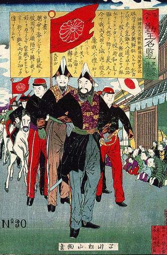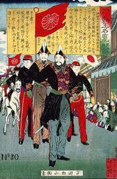 | Keywords: Gai.jpg  Nishiki-e painting a kind of Ukiyo-e in Meiji period of Kuroda Kiyotaka probably the right person with Inoue Kaoru behind him ja ja 明治時代の錦絵  古今勤王名覧 黒田公 井上公 右の人物が黒田公(黒田清隆弁理大臣)  の後ろが井上公(井上馨)とみられる 下部 早  山図書 は  早  山 の絵と 葉 の意か  http //f48 aaa livedoor jp/~adsawada/siryou/060/resi017 html http //f48 aaa livedoor jp/~adsawada/siryou/index htm きままに歴史資料集 明治開化 の日 と 鮮(6) cf One of the same kind of image is in http //mdat ff tku ac jp/korea/N003 HTML the collection of TOKYO KEIZAI UNIVERSITY LIBRARY ja  京経済大学・ 鮮錦絵コレクション Meiji Era 早  山図書 may be Hayakawa Shozan's drawing and words  Shozan  山 was born in 1850 and died in 1892 PD-Japan Nishiki-e in Meiji period Ukiyo-e of historical figures and folk tales |