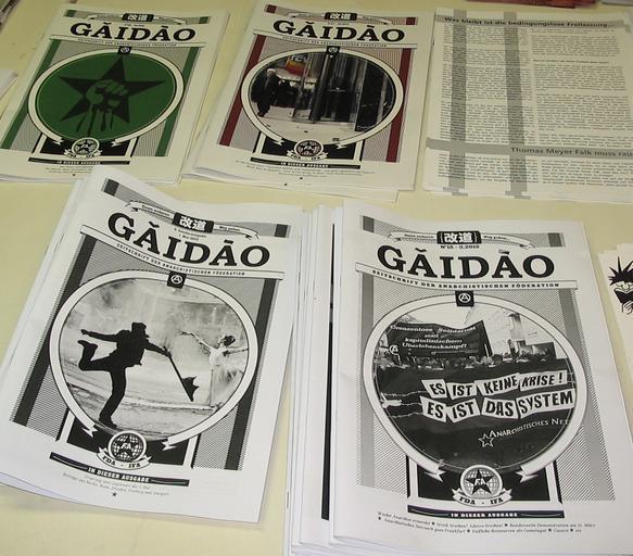 | Keywords: Gaidao.jpg en Gǎidào magazine of the Ferderation of German language anarchists FdA de Verschiedene Ausgaben der Gǎidào der Zeitschrift der Föderation deutschsprachiger Anarchist innen FdA eo Gǎidào revuo de la Federacio germanlingvaj Geanarkiistoj FdA own Reclus 2013-04-26 Periodicals about anarchism Anarchism in Germany Cc-zero |