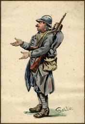 | Keywords: university of victoria universityofvictoria uvic great britain. army. royal regiment of artillery greatbritainarmyroyalregimentofartillery caricatures and cartoons--20th century caricaturesandcartoons20thcentury notebooks war artists warartists world war, 1914-1918--pictorial works worldwar19141918pictorialworks world war, 1914-1918--caricatures and cartoons worldwar19141918caricaturesandcartoons people outdoor photo border Item is one of 123 pen-and-ink drawings and watercolours from two volumes titled: "Sketches of the War: France/Belgium". The sketches vary from satirical cartoons to more detailed and naturalistic renditions. They are often accompanied by an ironic title and are often signed with the artist's initials, "J.M." The artist's satirical targets include the officers and high command of both combatant sides; the disjuncture between reported and actual events, and the death of civilians as a fact of modern warfare. Item is one of 123 pen-and-ink drawings and watercolours from two volumes titled: "Sketches of the War: France/Belgium". The sketches vary from satirical cartoons to more detailed and naturalistic renditions. They are often accompanied by an ironic title and are often signed with the artist's initials, "J.M." The artist's satirical targets include the officers and high command of both combatant sides; the disjuncture between reported and actual events, and the death of civilians as a fact of modern warfare. |