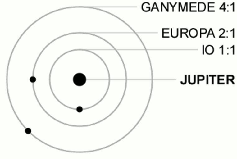 | Keywords: Galilean moon Laplace resonance animation 2.gif  Laplace resonance between Io Europa and Ganymede The labels indicate the ratios of orbital periods Europa's is twice Io's and Ganymede's is four times Io's <br> In this revision of a black and white version brief color changes are used to highlight conjunctions green or magenta for nearest-neighbor gray for non-nearest neighbor to illustrate that the conjunctions recur at the same orbital locations after making allowance for precession All nearest-neighbor conjunctions occur in the vertical axis running through the diagram Per orbit of Ganymede there are 8 occasions when at least 3 bodies line up examples of syzygy separated by successive intervals of 1/6 1/6 1/12 1/12 1/6 1/6 1/12 and 1/12 of a cycle including 2 occasions when all 4 bodies line up all oppositions of Europa involve 4-body lineups <br><span style color red >Warning do not downsize the image below its original size of 365 × 245 when used in a Wikipedia article as the animation won't move then at least not for all users </span> 2014-09-01 14 56 11 Revision of Galilean moon Laplace resonance animation gif by User Matma Rex WolfmanSF <gallery> File Galilean moon Laplace resonance animation gif Galilean moon Laplace resonance animation gif Earlier black and white version </gallery> cc-zero Uploaded with UploadWizard Galilean moons Rotation animations Animated GIF |