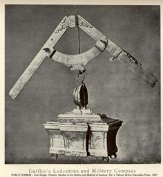 | Keywords: Galileo-lodestone-150-768x835.png lodestone is hanging supporting an iron weight in the shape of a sarcophagus coffin belonging to the Italian scientist Galileo Galilei The iron sarcophagus weighs 15 pounds the lodestone only 6 ounces For 400 years the lodestone has held up the weight without losing its strength http //www marcdatabase com/~lemur/lemur com/gallery-of-antiquarian-technology/philosophical-instruments/galileo-singer/ 1921 Charles Singer Instruments by Galileo Galilei Lodestones PD-old |