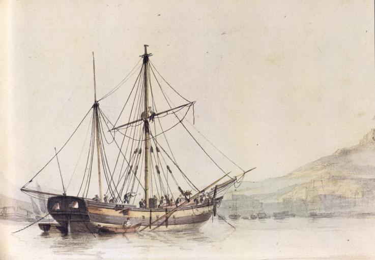 | Keywords: Galiotte a bombes-Antoine Roux-p49.jpg Bomb ship anchored off the Vieux-Port of Marseille possibly during the blockade of Marseille Jean Meissonnier Voiliers de l'Époque romantique Edita Lausanne 1991 ISBN 2-88001-273-2 p 49 Creator Antoine Roux PD-art-100 Antoine Roux |