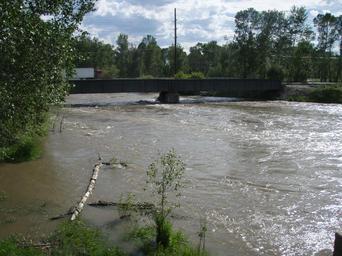 Keywords: GallatinRiverFloodNearI-90.jpg en Gallatin River during Spring Runoff - June 2008 near I-90 bridge own Mike Cline 2008-06 Gallatin River