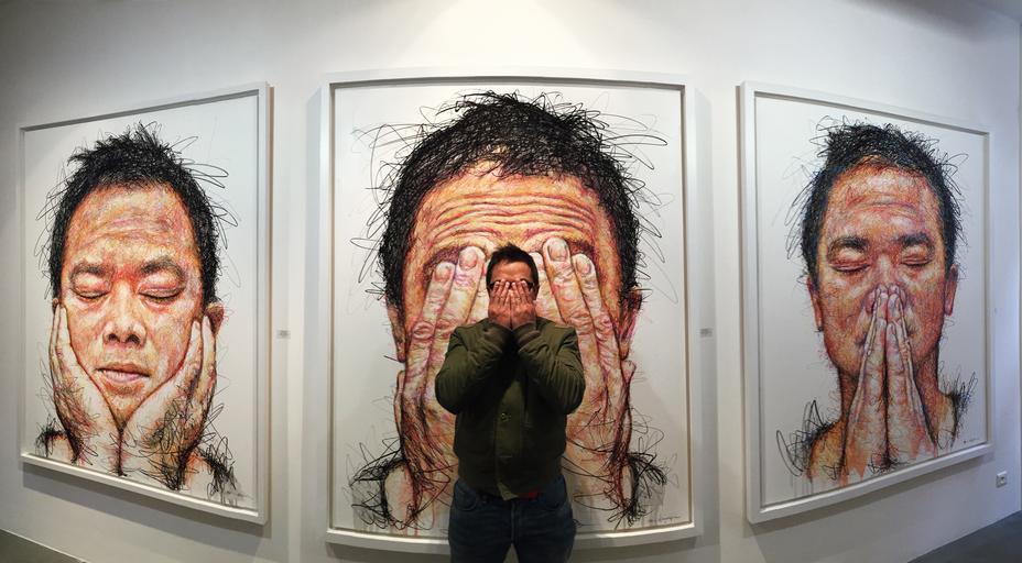 Keywords: #homnguyen homnguyen #art art #galerie galerie a2zgallery paris people groupshot indoor The three Monkeys #homnguyen The three Monkeys #homnguyen