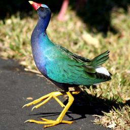 Keywords: gallinule bird purple gallinule dancing green blue beak feather