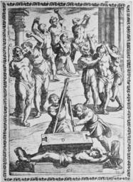 | Keywords: Gallonio Tortures 1591 p15.jpg Woodcut by Tempesta showing a torture/execution scene of martyrs from Gallonio's Tortures and Torments of the Christian Martyrs «Trattato degli instrumenti di martiro e delle varie maniere di martoriare usate da' gentili contro christiani descritti et intagliate in rame; opera di Antonio Gallonio» first publication Rome 1591 / scans from a 1904 reprint woodcut by Antonio Tempesta Reproduction of a painting that is in the public domain because of its age PD-old-100 Trattato degli instrumenti di martiro |