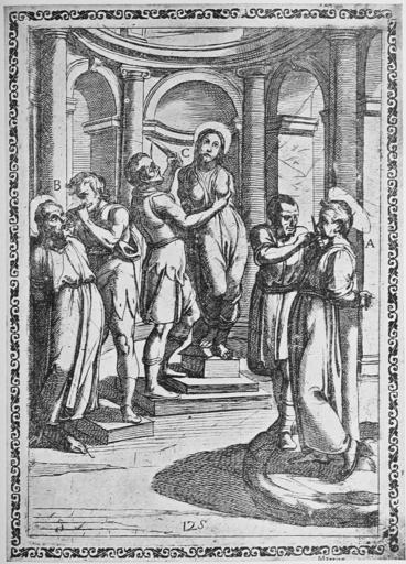 | Keywords: Gallonio Tortures 1591 p33.jpg Woodcut by Tempesta showing a torture/execution scene of martyrs from Gallonio's Tortures and Torments of the Christian Martyrs «Trattato degli instrumenti di martiro e delle varie maniere di martoriare usate da' gentili contro christiani descritti et intagliate in rame; opera di Antonio Gallonio» first publication Rome 1591 / scans from a 1904 reprint woodcut by Antonio Tempesta Reproduction of a painting that is in the public domain because of its age PD-old-100 Trattato degli instrumenti di martiro |
