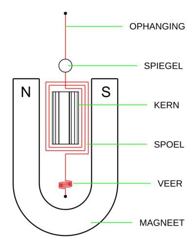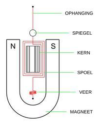 Keywords: GalvanometerDArsonval.svg d'Arsonval galvanometer Own 2008-03-25 PieterJanR Translation possible D'Arsonval galvanometers Mirror galvanometers SVG electricity