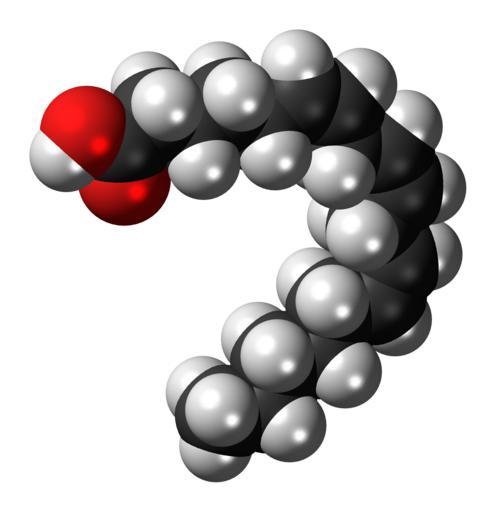 | Keywords: Gamma-Linolenic-acid-3D-spacefill.png Space-filling model of the γ-linolenic acid molecule an unsaturated fatty acid Colour code 505050 Carbon C black<br> F0F0F0 Hydrogen H white<br> F51E1E Oxygen O red<br> 2011-06-09 own DS Visualizer Jynto talk Ball-and-stick version cc-zero Polynsaturated fatty acids Cis fatty acids Images by Jynto Space-filling models |