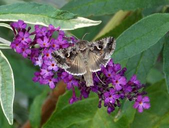 Keywords: gamma owl butterfly noctuinae stubs summer lilac buddleja davidii diurnal nocturnal wing flight insect insect nature animal grey gamma macro close garden flowers plant food intake nectar