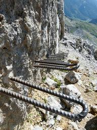 | Keywords: gamsängersteig climbing shoring hunter wall aid metal head iron pins iron brackets clamp iron hook pens climbing aid ellmauer halt red rinn gathered mountains alpine wilderkaiser kaiser mountains medium difficulty exposed climber the rope rock steep iron way |