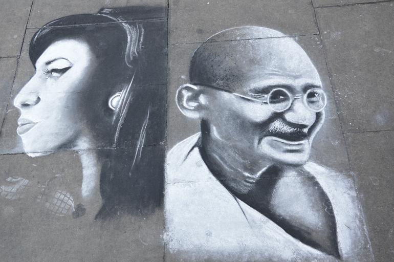 Keywords: gandhi mahatma gandhi amy winehouse street art camden london ground painting chalk art singer