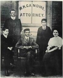 | Keywords: "Gandhiji (centre) outside his South African Office in 1913. Seated on his left is Miss Schlesin." Sonja Schlesin was the daughter of Jewish immigrants to South Africa. She was hired to work as Gandhi’s secretary. Schlesin was an activist and staunch supporter of Gandhi’s political work. Source: UH Manoa Library "Gandhiji (centre) outside his South African Office in 1913. Seated on his left is Miss Schlesin." Sonja Schlesin was the daughter of Jewish immigrants to South Africa. She was hired to work as Gandhi’s secretary. Schlesin was an activist and staunch supporter of Gandhi’s political work. Source: UH Manoa Library |