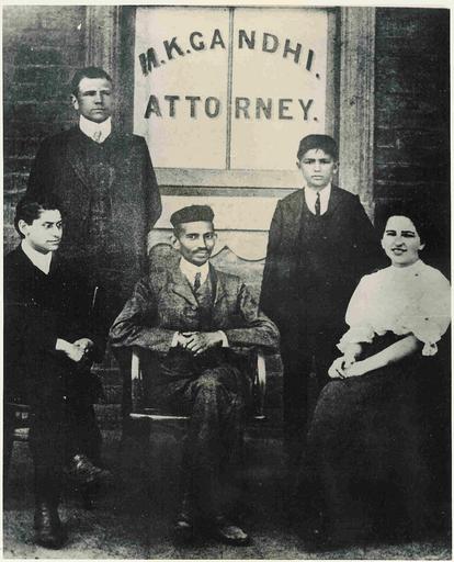 Keywords: "Gandhiji (centre) outside his South African Office in 1913. Seated on his left is Miss Schlesin." Sonja Schlesin was the daughter of Jewish immigrants to South Africa. She was hired to work as Gandhi’s secretary. Schlesin was an activist and staunch supporter of Gandhi’s political work. Source: UH Manoa Library "Gandhiji (centre) outside his South African Office in 1913. Seated on his left is Miss Schlesin." Sonja Schlesin was the daughter of Jewish immigrants to South Africa. She was hired to work as Gandhi’s secretary. Schlesin was an activist and staunch supporter of Gandhi’s political work. Source: UH Manoa Library |