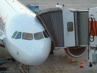 Keywords: gangway access bridge access stairs passenger stairs aircraft airport entry cockpit pilots increased to frontal front front view nose hull aviation holiday travel