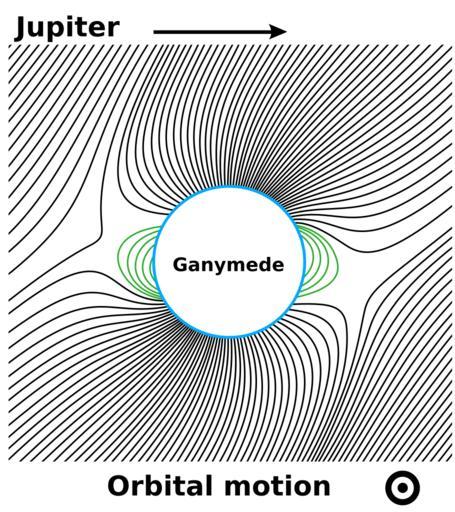 | Keywords: Ganymede magnetic field.svg The image depicts magnetic field of the Jovian satellite Ganymede embedded into the magnetosphere of Jupiter The image is based on the reported Galileo measurements <ref name Kivelson1998> cite journal Kivelson M G Warnecke J ; Bennett L et al Ganymede ™s magnetosphere magnetometer overview J of Geophys Res 1998 103 E9 19 963-19 972 10 1029/98JE00227 http //www igpp ucla edu/people/mkivelson/Publications/98JE00227 pdf pdf </ref><ref name Kivelson2002> cite journal Kivelson M G Khurana K K ; Coroniti F V et al The Permanent and Inductive Magnetic Moments of Ganymede Icarus 2002 157 507-522 0 1006/icar 2002 6834 http //www igpp ucla edu/people/mkivelson/Publications/ICRUS1572507 pdf pdf </ref> The green color denotes closed field lines The model used for this work is a superposition of the background Jovian field 120 nT and the intrinsic field 720 nT at the equator The angle between the background field and the moment is 45° reflist Ganymede_magnetic_field jpg 2009-12-09 02 37 UTC Ganymede_magnetic_field jpg Ruslik0 derivative work McSush <span class signature-talk >talk</span> redrawn as svg image McSush Ganymede_magnetic_field jpg Diagrams of Ganymede moon Jupiter magnetosphere |