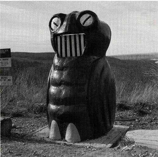 | Keywords: blackandwhite black and white A Garbage Gobbler trash recepticle somewhere off a BC highway. Photograph from the late-1960s. The Garbage Gobbler was a familiar sight to highway travellers in British Columbia from 1958 to the 1980s until they were replaced by bear-proof receptacles at view points and rest and information stops along BC's highways. [BC Archives; Photographer unknown] A Garbage Gobbler trash recepticle somewhere off a BC highway. Photograph from the late-1960s. The Garbage Gobbler was a familiar sight to highway travellers in British Columbia from 1958 to the 1980s until they were replaced by bear-proof receptacles at view points and rest and information stops along BC's highways. [BC Archives; Photographer unknown] |