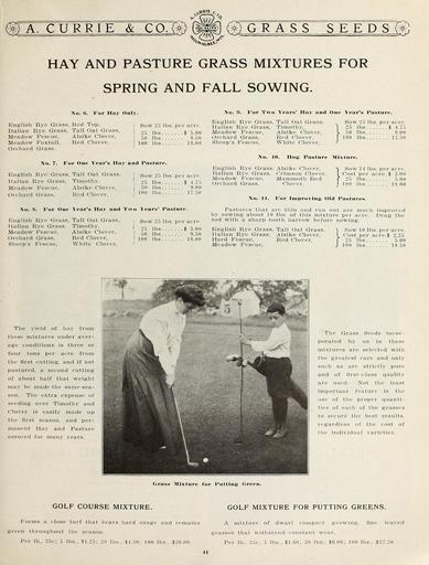 | Keywords: Garden and farm seeds (15750261674).jpg y Ulfc <br> a currie co m i <br> GRASS SEEDS <br> £± <br> HAY AND PASTURE GRASS MIXTURES FOR <br> SPRING AND FALL SOWING <br> No For Hay Only <br> English Rye Grass Red Top 1 Sow 25 lbs per aero <br> Italian Rye Grass Tall Oat Grass 25 lbg 5 00 <br> Meadow Fescue Alsike Clover ' g lbs 9 50 <br> Meadow Foxtail Red Clover j 100 Yos 18 00 <br> Orchard Grass <br> No 7 For One Year's Hay aud Pasture <br> English Rye Grass Tall Oat Grass 1 g ow 25 lbs per acre <br> Italian Rye Grass Timothy I 25 lbs ' 4 75 <br> Meadow Fescue Alsike Clover 50 lbs 9 00 <br> Orchard Grass Red Clover P 10 ° lbs 17 - 5 l <br> No S For One Year's Hay and Two Years' Pasture <br> English Rye Grass Tall Oat Grass -j Sow 25 lbs per acre <br> Italian Rye Grass Timothy bg <br> Meadow Fescue Alsike Clover ' r 5 q j ds 9 50 <br> Orchard Grass Red Clover I 100 lbs 18 00 <br> Sheep's Fescue White Clover <br> No i For Two Years' Hay and One Year's Pasture <br> English Rye Grass Tall Oat Grass <br> Italian Rye Grass Timothy <br> Meadow Fescue Alsike Clover <br> Orchard Grass Red Clover <br> Sheep's Fescue White Clover <br> Sow 25 lbs per acre <br> 4 75 <br> 9 00 <br> lbs 17 50 <br> Sow 25 <br> 25 lbs <br> 50 lbs <br> 100 lbs <br> No 10 Hog Pasture Mixture <br> English Rye Grass Alsike Clover <br> Italian Rye Grass <br> Meadow Fescue Mam <br> Orchard Grass <br> Isike Clover – » Sow 14 lbs per acre <br> rimson Clover I Cost per acre 3 00 <br> ammoth Red 25 lbs 5 00 <br> Clover I 100 lbs 18 00 <br> No II For Improving; Old Pastures <br> Pastures that are thin and run out are much improved <br> by sowing- about 10 lbs of this mixture per acre Drag- the <br> sod with a sharp tooth harrow before sowing <br> English Rye Grass Tall Oat Grass <br> Italian Rye Grass Alsike Clover <br> Hard Fescue Red Clover <br> Meadow Fescue <br> Sow 10 lbs per acre <br> Cost per acre 2 25 <br> 25 lbs 5 00 <br> 100 lbs 18 50 <br> The yield of hay from <br> these mixtures under aver- <br> age conditions is three or <br> four tons per acre from <br> the first cutting and if not <br> pastured a second cutting <br> of about half that weight <br> may be made the same sea- <br> son The extra expense of <br> seeding over Timothy and <br> Clover is easily made up <br> the first season and per- <br> manent Hay and Pasture <br> assured for many years <br> The Grass Seeds incor- <br> porated by us in these <br> mixtures are selected with <br> the greatest care and only <br> such as are strictly pure <br> and of first-class quality <br> are used Not the least <br> important feature is the <br> use of the proper quanti- <br> ties of each of the grasses <br> to secure the best results <br> regardless of the cost of <br> the individual varieties <br> Grass Mixture for Putting Green <br> GOLF COURSE MIXTURE <br> Forms a close turf that bears hard usage and remains <br> fieen throughout the season <br> Per lb 35c; 5 lbs 1 25; 20 lbs 4 50; 100 lbs 20 00 <br> GOLF MIXTURE FOR PUTTING GREENS <br> A mixture of dwarf compact growing fine leaved <br> grasses that withstand constant wear <br> Per lb 35c; 5 lbs 1 60; 20 lbs 6 00; 100 lbs 27 50 <br> 41 42156493 132761 65916 Page 41 Text http //www biodiversitylibrary org/page/42156493 1912 10 5962/bhl title 65916 A Currie Company ; Henry G Gilbert Nursery and Seed Trade Catalog Collection Biodiversity Heritage Library Garden and farm seeds spring 1912 Garden Stories Bulbs Plants Catalogs Equipment and supplies Flowers Gardening Nurseries Horticulture Plants Ornamental Seeds Vegetables U S Department of Agriculture National Agricultural Library bhl page 42156493 dc identifier http //biodiversitylibrary org/page/42156493 bhlGardenStories BHLinbloom bulbs plants nurseries horticulture plants ornamental u s department of agriculture national agricultural library bhlgardenstories bhlinbloom Information field Flickr posted date ISOdate 2015-01-26 Check categories 2015 August 25 CC-BY-2 0 BioDivLibrary https //flickr com/photos/61021753 N02/15750261674 2015-08-25 06 53 07 cc-by-2 0 PD-old-70-1923 Garden and farm seeds 1912 Photos uploaded from Flickr by Fæ using a script |