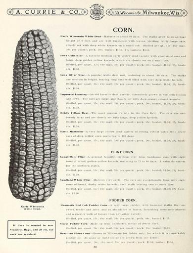 | Keywords: Garden and farm seeds (16346714906).jpg \ H / <br> A C U R R I E CO fe \ <br> ˘ALU -' <br> 130 Wisconsin St Milwaukee Wis <br> CORN <br> Early Wisconsin <br> Wliite Dent <br> If <br> Corn its <br> nnut <br> – 1 <br> ill <br> new <br> Sen 111 <br> leNW <br> l» i«- <br> add <br> 20 <br> eta <br> for <br> encli <br> bag <br> reqii <br> red <br> Early Wisconsin White Dent ” Matures in about 90 days The stalks grow to an average <br> height of 8 feet and are well furnished with leaves yielding fairly large ears <br> closely set with deep white kernels on a small cob Shelled per qt 15c; by mail <br> 30c per quart ; peck 50c; bushel 1 50; 2 bushels 3 50 <br> Iowa Gold Mine ” A favorite medium early yellow dent variety with good sized ears and <br> large deep golden yellow kernels which are closely set on a small cob <br> Shelled per quart 15c; by mail 30c per quart ; peck 50c; bushel 1 50; 2 bush- <br> els 3 50 <br> Iowa Silver Mine ” A popular wliite dent sort maturing in about 100 days The stalks <br> are medium in height bearing long ears well filled with very deep white kernels <br> Shelled per quart 15c; by mail 30c per quart ; peck 50c; bushel 1 50; 2 bush- <br> els 3 50 <br> Improved 'Learning' ” An old favorite dent variety extensively grown in northern Illinois <br> and Iowa The ears are large and closely set with deep orange colored kernels <br> Shelled per quart 15c; by mail 30c per quart ; peck 50c; bushel 1 50; 2 bush- <br> els 3 50 <br> Ileid's Yellow Dent ” The most popular variety in the Corn Belt The ears are uni- <br> formly large and are closely set with large deep yellow kernels <br> Shelled per quart 15c; by mail 30c per quart ; peck 50c; bushel 1 50; 2 Vz bush- <br> els 3 50 <br> Early Mastodon ” A very large yellow dent variety of strong robust habit with heavy <br> ears of deep yellow corn maturing in 100 days <br> Shelled per quart 15c; by mail 30c per quart ; peck 50c; bushel 1 50; 2 bush- <br> els 3 50 <br> FLINT CORN <br> Longfellow llim ” A general favorite yielding' very long handsome ears with eight <br> rows of broad golden-yellow kernels maturing in 75 to 80 days A valuable variety <br> for the northern states <br> Shelled per quart 15c; by mail 30e per quart ; peck 50c; bushel 1 50; 2 bush- <br> els 3 50 <br> Snndford White Klint ” Matures very early The ears are exceptionally long with eight <br> rows of broad dusky wliite kernels; each stalk bearing two or more ears <br> Shelled per quart 15c; by mail 30c per quart ; peck 50c; bushel 1 50; 2Yz bush- <br> els 3 50 <br> FODDER CORN <br> Mammoth Red fob Fodder Corn ” A very large yielder with immense stalks that are <br> sweet tender and juicy and an abundance of leaves furnishing more nourishment <br> and a greater bulk of forage than any other variety <br> Shelled per quart 15c; by mail 30c per quart ; peck 40c; bushel 1 25 <br> Sweet Fodder torn ” Made up from unselected stocks of Sweet Corn <br> Shelled per quart 20c; by mail 30c per quart ; peck 75c; bushel 2 75 <br> Brazilian Flour Corn ” Grown in Wisconsin for fodder only for which it is remarkably <br> productive As many as eight stalks arc grown from one kernel <br> Shelled per quart 20c; by mail 35c per quart ; peck 1 00; bushel 3 50 <br> 33 42156484 132761 65916 Page 32 Text http //www biodiversitylibrary org/page/42156484 1912 10 5962/bhl title 65916 A Currie Company ; Henry G Gilbert Nursery and Seed Trade Catalog Collection Biodiversity Heritage Library Garden and farm seeds spring 1912 Garden Stories Bulbs Plants Catalogs Equipment and supplies Flowers Gardening Nurseries Horticulture Plants Ornamental Seeds Vegetables U S Department of Agriculture National Agricultural Library bhl page 42156484 dc identifier http //biodiversitylibrary org/page/42156484 bhlGardenStories BHLinbloom bulbs plants nurseries horticulture plants ornamental u s department of agriculture national agricultural library bhlgardenstories bhlinbloom Information field Flickr posted date ISOdate 2015-01-26 Check categories 2015 August 25 CC-BY-2 0 BioDivLibrary https //flickr com/photos/61021753 N02/16346714906 2015-08-25 06 54 42 cc-by-2 0 PD-old-70-1923 Garden and farm seeds 1912 Photos uploaded from Flickr by Fæ using a script |