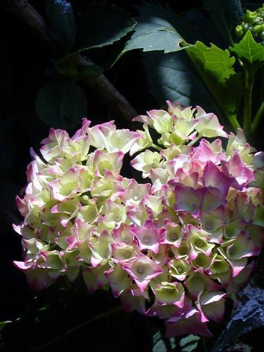 Keywords: garden flower hydrangea pink light green