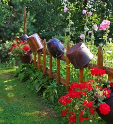 Keywords: garden flowers the fence pots ornament arrangement the idea of