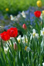 Keywords: garden flowers tulips red blue daffodils white plants