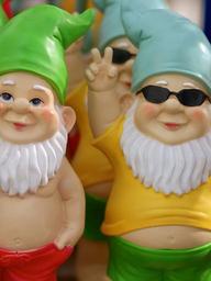 Keywords: garden gnome colorful funny summer green yellow red blue mischievously garden mood sunglasses
