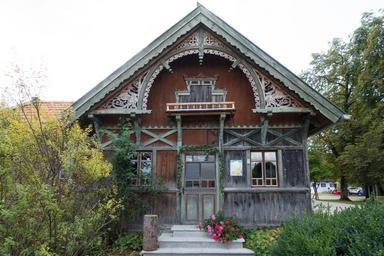 Keywords: garden shed bavaria upper bavaria semicircular arch old rustic wood carved wooden windows window flowers wooden boards old house facade historically atmosphere geranium stairs