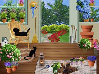Keywords: garden shed gardening horticulture pots flower pots flowers in pots black cat windows garden flowers gardening tools trees beds oil lamp mounting