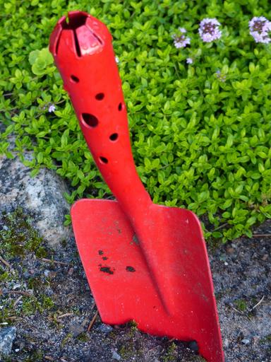 Keywords: garden spade red earth garden plant green flowers