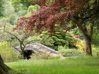 Keywords: garden vegetation bridge stream trees color red autumn nature grass flora outdoors season landscape foliage